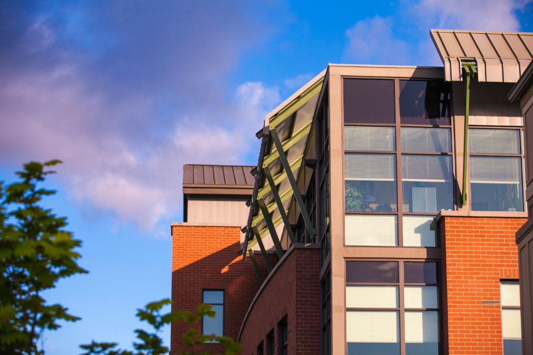 A modern town surrounded by natural beauty.
